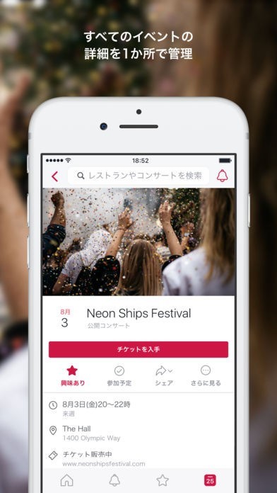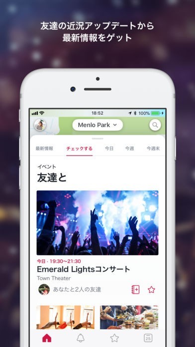 「Facebook Local」は、世界最大規模のSNS「Facebook」が公式配信しているアプリです。 友達の最新情報やアクティビティをアプリで手軽に確認可能。 検索機能を搭載しており、近隣で開催されるイベントの検索が行える他、条件を絞り込めるのも便利なポイントとなっています。 また、おすすめイベントの表示機能も充実しており、60都市以上のイベントを表示することができます。