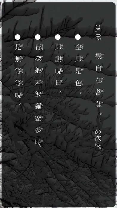 App Storeより引用般若心経を四択のクイズ形式で覚える無料アプリ「般若心経をおぼえよう」では物足りない、というあなた。