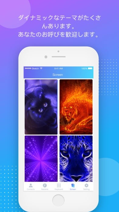 躍動的があって大迫力の神秘的なコールスクリーンのテーマが数種類用意されています。通話相手別にテーマを設定することができるので、着信画面で誰からの着信かすぐに特定できます。