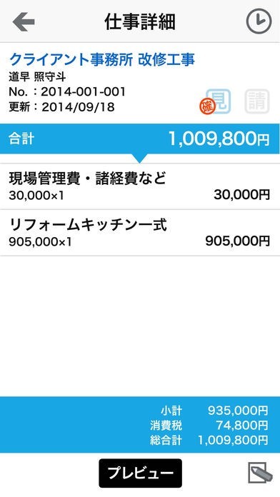 Jimuu(ジムー)見積・請求書は、パソコンを使わなくても見積・請求書を作成することができます。見積書の作成は、見積書編集機能を使ってお客様名と商品、金額を入力するだけです。パソコンが苦手な方や営業先ですぐに見積もりを出したいときにも使えます。操作が簡単な上、内容を変更したり詳細を入力したりと変更が可能なので新しく作り直す手間が省けます。見積書作成機能をもとに内容を引き継いで、請求書の作成をします。出来上がった見積書 / 請求書はメールやファックスで送信可能です。自分のパソコンに送信してPDFでの保存もできます。スマホが商品台帳や顧客台帳にもなる管理機能としても使えるアプリです。