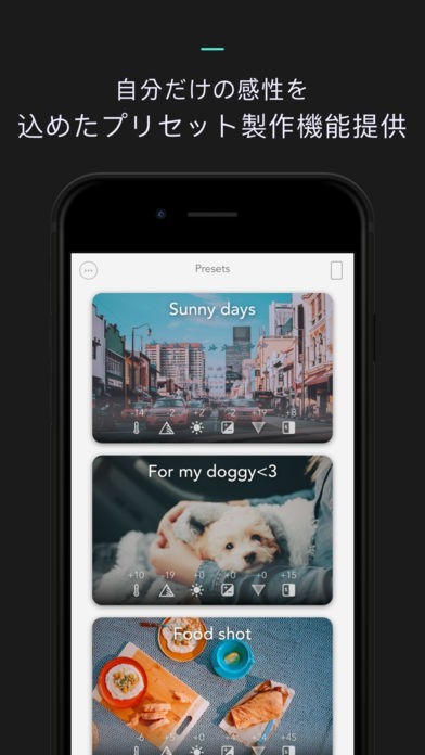 自分だけの感じと感性を込めたプリセットを直接作って保存できます。