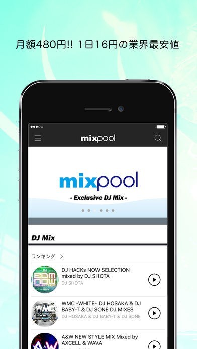 「mixpool」は、スマートフォンでダンスミュージックを無制限に聴き放題で楽しむことができるアプリとなっていて、最新トラックからミックスまで自由に聴くことができます。
