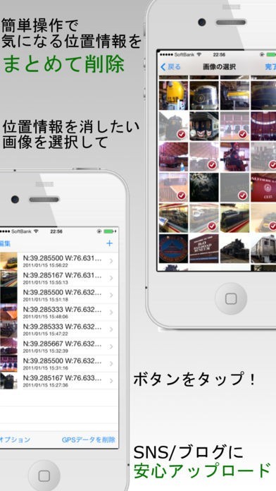 GPSデータを一括で消す機能付き!SNSサイトにアップロードする時に役立つ