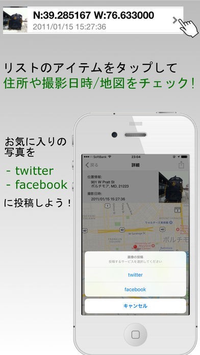 GPSの付いているスマホでは撮影した画像にGPSデータを入れることが可能ですが、このアプリにはGPSデータを消す機能が付いています。 SNSサイトに画像をアップロードしても位置情報は含まれていないために安心です。 一括で消せる機能が付いているため、複数の画像でも手間がかかりません。 GPSデータを消した後の画像はアルバムに保存できる機能が付いているため、消す前の画像と混ざりません。 別のアルバムに保存しておけば間違って消す前の画像をアップロードしてしまうという心配が少なくなります。 SNSサイトへの共有機能も付いているため、スマートにアップロードができます。