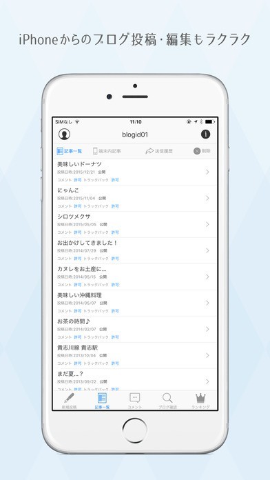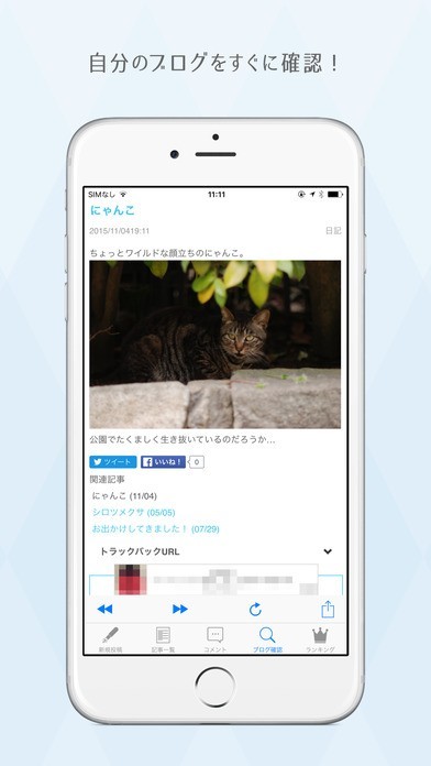 美容や健康、ダイエット、ペット、趣味などブログで日記を付けたいという方に便利なのがこのアプリです。 ブログに書いた記事に写真を入れたい時に便利な画像編集機能が付いています。 自動的に縮小表示されるため、わざわざブログ用のために画像編集ソフトを使用し、画像のリサイズを行うという事は不要です。 アプリを起動するだけ、ログインを行わなくても記事の投稿が行えます。 複数アカウントで複数ブログ運営するといった方法も可能です。 ブログの記事を投稿すると無関係のトラックバックが付けられる事がありました。 そんな時でもトラックバックの管理にて承認、削除ができるために安心です。
