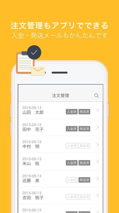 アプリは受注したらすぐに通知してくれ、返信も自動で行います。入金や発送など様々な作業もスムーズに行え、管理システムも使いやすくて、ショップ運営が初心者でも簡単にこなせます。