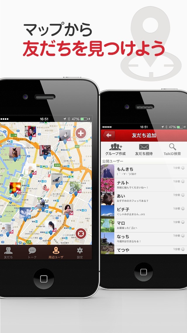 GPS機能を利用することで、近くに住んでいる人と会話をすることが可能!