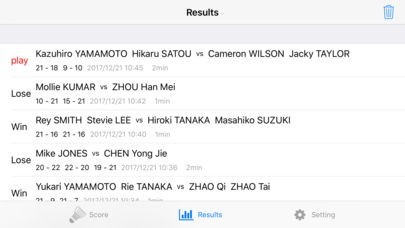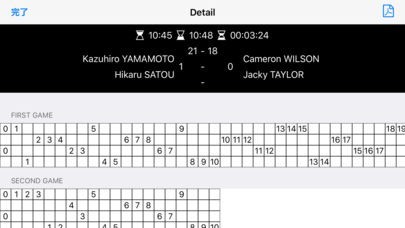 保存した記録はスコアシートと同じように、誰がポイントを取ったのかがわかるように表示されます。また、この記録は試合途中でも確認することが可能です。