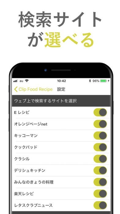 ・人気のレシピサイトを選択しまとめて検索することができます。