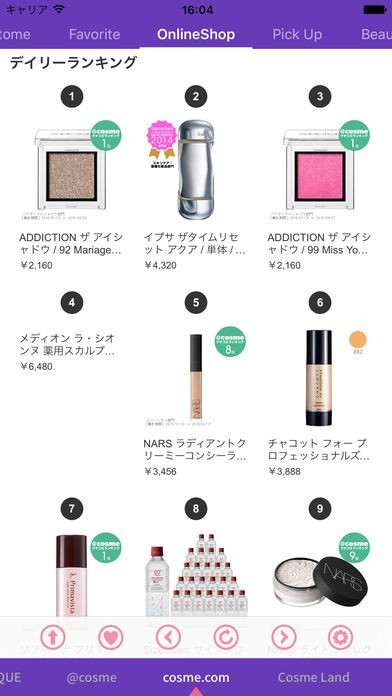 □主要な人気コスメオンライショップでの閲覧、購入。