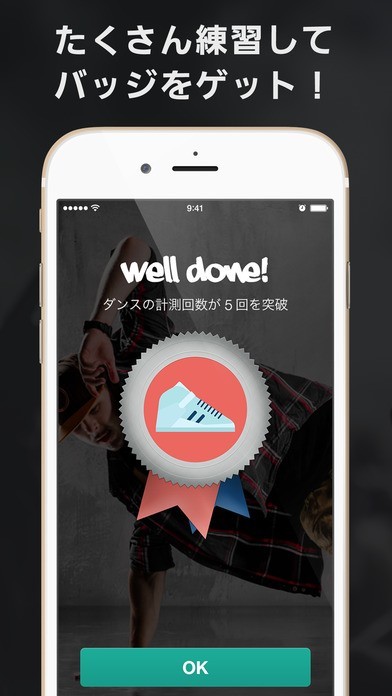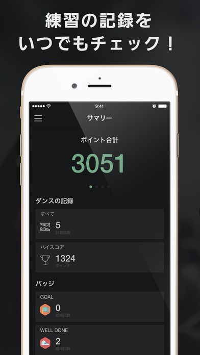 ダンスムーブ測定機能で楽しく練習!バッジ獲得機能で毎日の練習を継続できる!