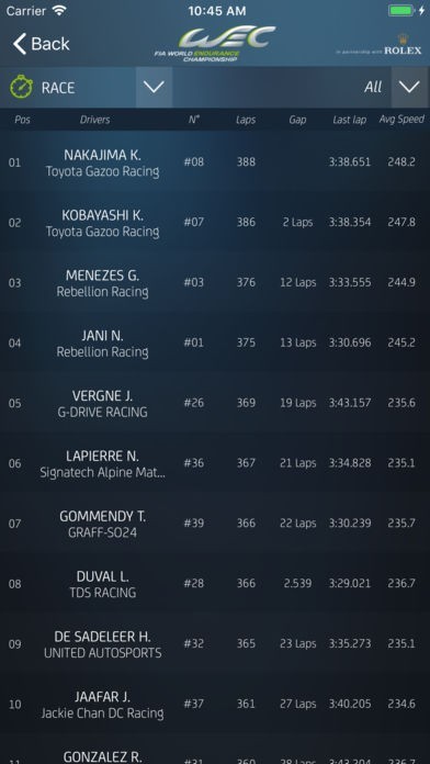 スマートフォンでル・マン24時間耐久レースに参戦しているチームの情報やドライバーのプロフィール、ライブタイミングなどの情報をチェックすることが出来るようになっています。