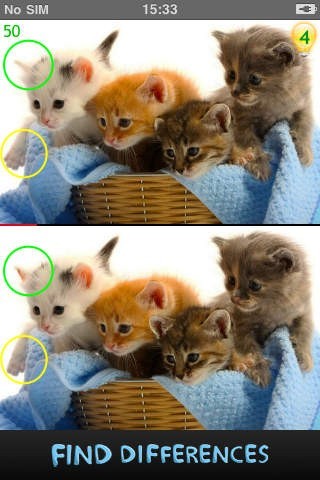 間違い探し!は200ものステージが用意されており、一つのステージに登場する二枚の写真から5つの違うところを見つけるタイプの間違い探しゲームで、集中力を高めたい人や脳トレに興味がある人に最適な内容と言えるでしょう。ステージごとにヒントも用意されていて、ゲーム進行ごとにヒントの使える数が増えていきます。一つのステージには制限時間があるものの、非常に集中力が要されるゲームという性質上、集中しやすく画面を動かしたりがしやすい室内で楽しむのが基本で、集中しやすい環境とは言えずプレイ時間が不安定となる電車の中などではゲームを少し進行する程度が限界と言えます。