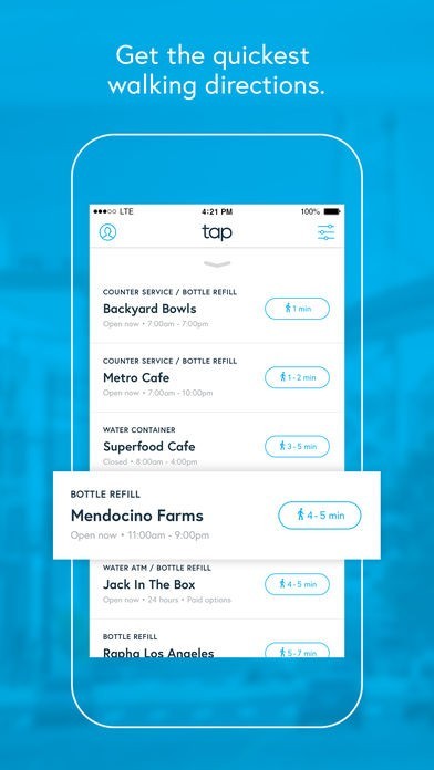 Tap’s Refill Station network is partly made up of partnerships with coffee shops and fast-casual restaurants, while also showing you best public places to refill your water bottle around the world. Whether a drinking fountain or a filtered water ATM, you’ll be sure to find it on Tap. We’re expanding and adding new Refill Stations every day to make Tap a convenient and reliable alternative to bottled water.