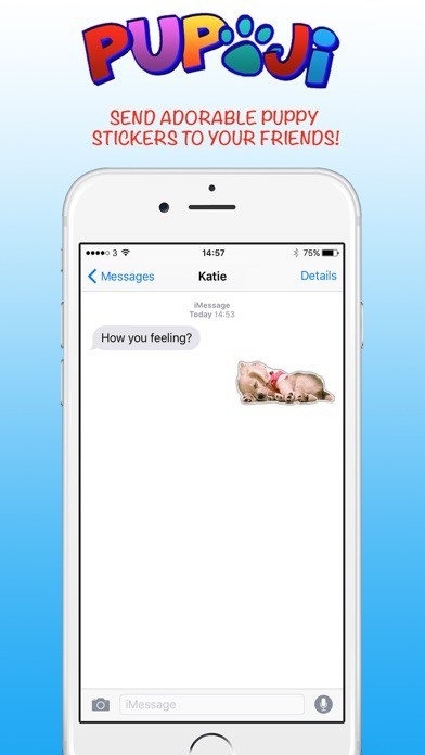 メッセージ画面に子犬のスタンプが貼れる