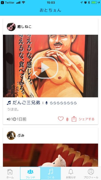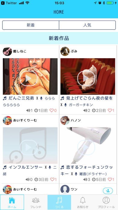 作った曲に、好きな写真やメッセージをつけて投稿。