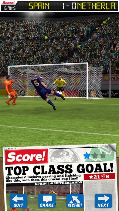 Score!「World Goals」は、徹底的に改良されたグラフィックエンジンとRetinaディスプレイで、さらに見るものを驚かせる、コンソール並みのゲーム体験をお届けします。500以上のモーションキャプチャ・アニメーションで、前代未聞のレベルのリアル感を実現。また、新しくなった音声とリアルな実況中継で、まるでその場にいるかのような体験が可能に。