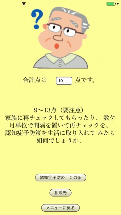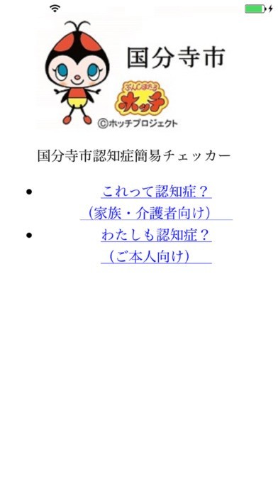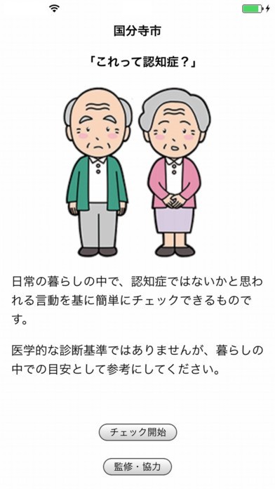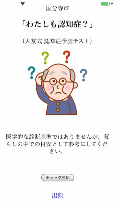国分寺市認知症簡易チェッカーのスクリーンショット