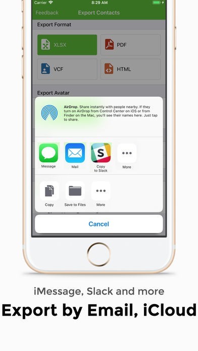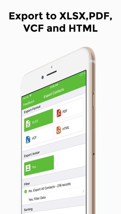 端末に保管している連絡先をXLSXやPDFに送信出来るようになっています。様々なフォーマットに対応していて、各種ファイルを自由に整理出来るのがメリットでしょう。