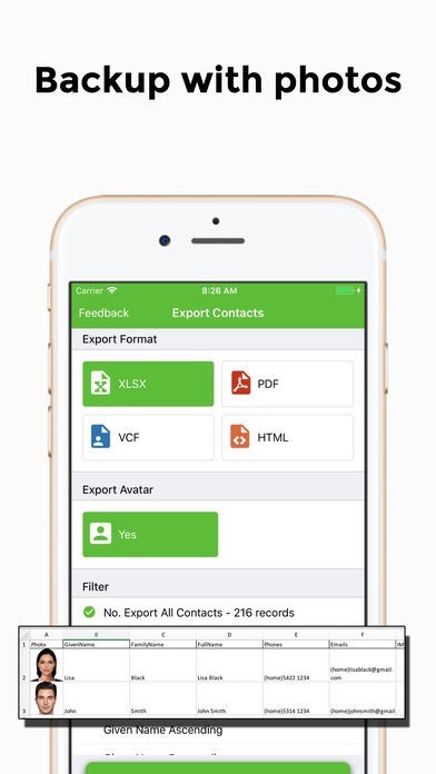 連絡先のエクスポート - 簡単なバックアップのスクリーンショット