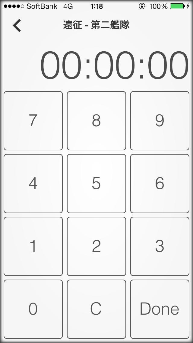 タイマーは遠征・入渠・建造に分かれており、タイマーを数字をタップするだけとシンプルで使いやすい構造になっています。遠征の途中でもタイマーは設定できるので、時間や場所を選びません。