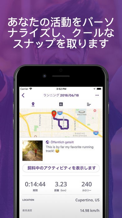 運動を行っているときにふと自分がどれだけの距離移動したのか気になることがありますね。このアプリにはGPS機能が備わっているので運動した距離を測ってくれていますし、自信が気にせずともアプリがすべて記録してくれます。