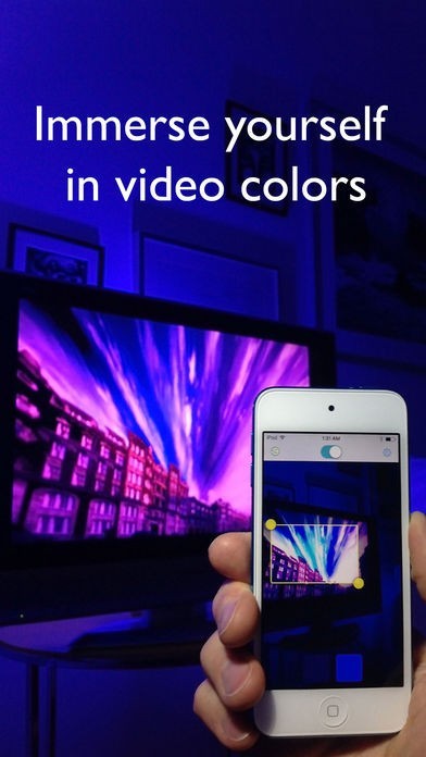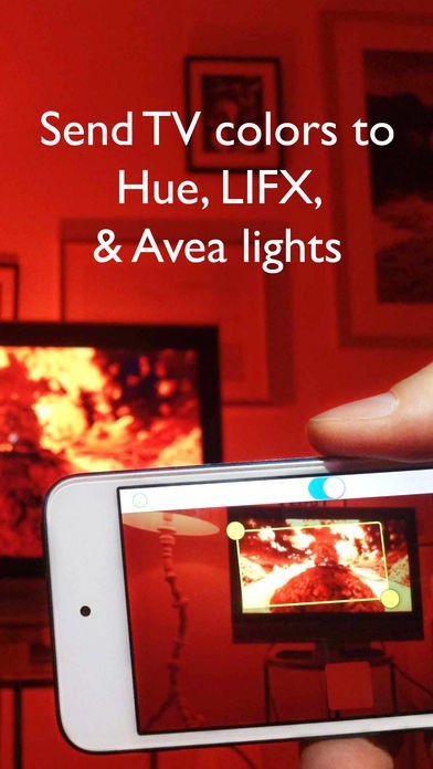 App Storeより引用Send colors from your TV to Hue, LIFX, and Avea bulbs. Just aim Hue TV at your monitor and your space lights up with colors that follow the show you're watching. Too cool!