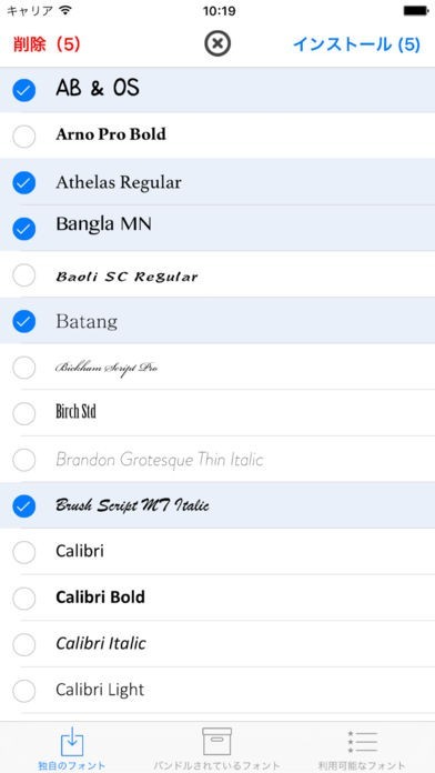 シングルフォントやマルチフォントは同時にインストール可能となっており、デザインや資料作成などで大量のフォントを取り扱う場合にも便利です。また、 iTunesのファイル共有からのインストールも行えます。