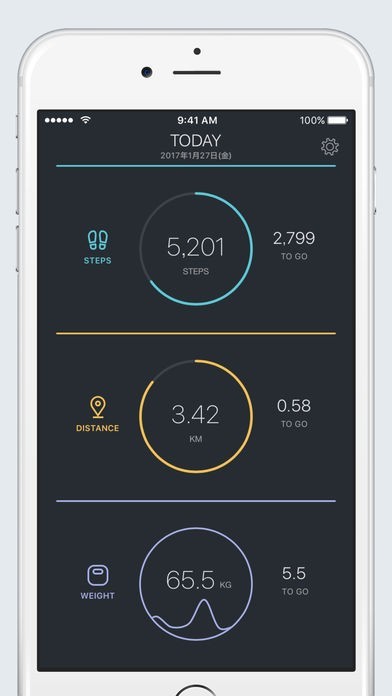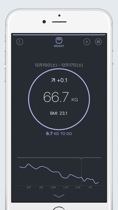 本日の進捗がわかるダッシュボードで、日ごと、週ごとの推移がわかるグラフで、努力の結果が一目瞭然なのでやる気が起きてダイエットを頑張れています。