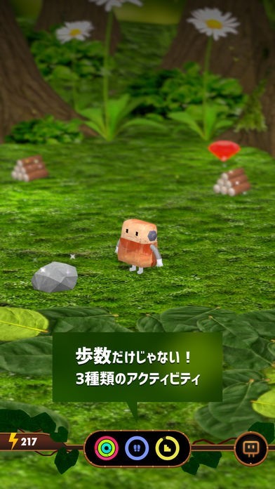 一日の歩いた歩数だったり階段を上ったりと運動した量に応じてゲームの主人公である木霊が成長したりアイテムがもらえるから運動するモチベーションが維持できるので毎日楽しく続けられるアプリになっています。