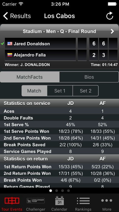 完了したマッチのスコアも配信!お気に入りの選手の試合結果も判る!