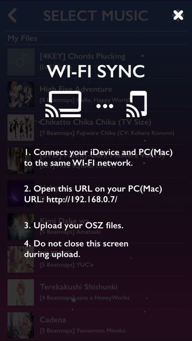デバイス内の音楽を使ってリズムゲームに参加出来る