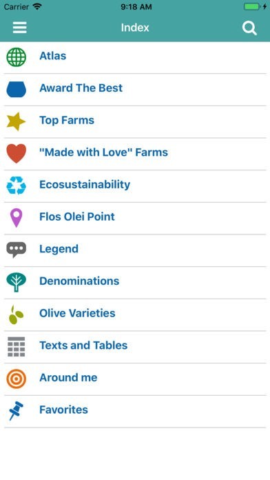 You can wander 5 continents and 52 countries (including Spanish and Italian regions), read their historical and geographical introductions, find maps and statistical data about the world productions and refer to 500 high-quality farms and as many oils described according to their variety, organoleptic characteristics and the best matches.