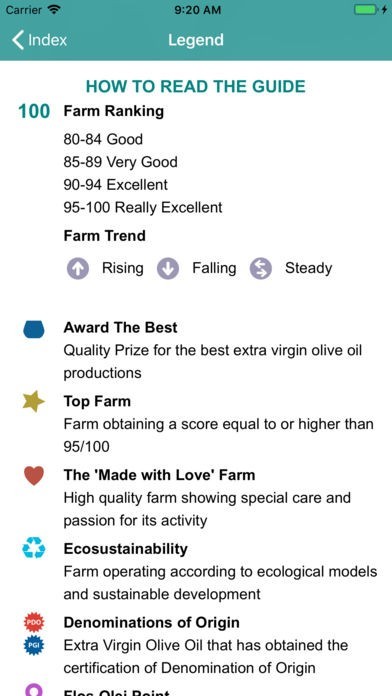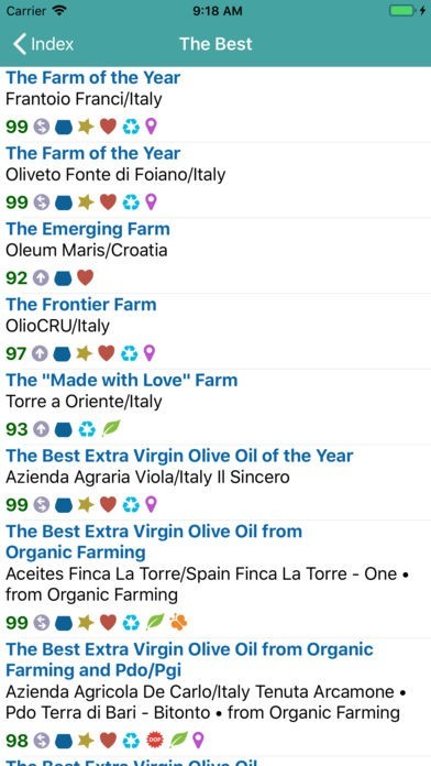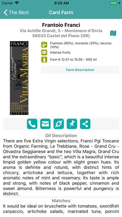 • Look for one of the extra virgin olive oils included in the book according to farm name, geographical area, ranking, price range, intensity of fruitiness, denomination of origin, from Organic Farming, value for money.