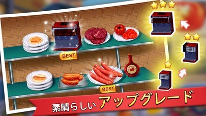 ステージをクリアするとコインがもらえて、コインを使って器具や食材をアップグレードすることができます。料理を作る時間を短縮できるので、より多くのお客さんをさばけます。