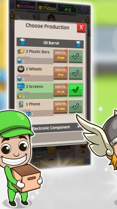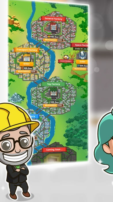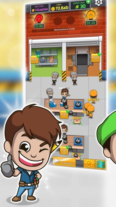 プレイヤーはゲーム内の工場を経営する管理者になり、必要に応じて作業員やマネージャーを雇ったり設備を拡張したりすることでお金が稼げて、気軽に大富豪気分を味わえます。