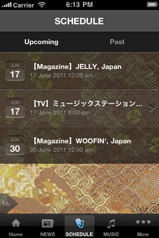 スケジュールでは、イベントからテレビ・ラジオ出演情報が分かる
