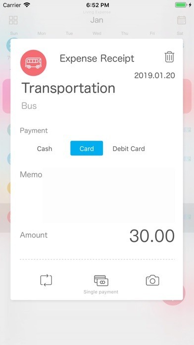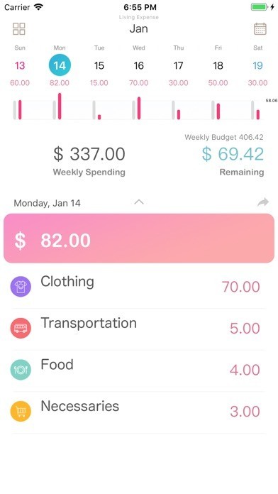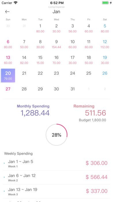 カレンダーに収支情報を細かく記載する事が可能なので、お金を使い過ぎてしまった日も簡単に確認していけます。週や月単位で出費状況がチェック出来るのもメリットですね。