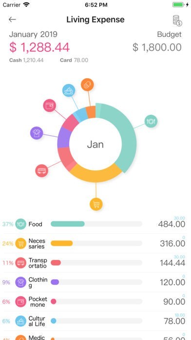 交際費や娯楽費等の様々なカテゴリーに対応していて、収支状況が詳細に登録出来るようになっています。予算を設定する事が可能なので、無駄遣いを防ぎたい時に重宝します。