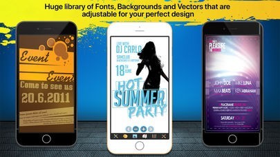プロが作ったようなチラシや招待状、ロゴやイベントカードをiPhoneやiPadで作成ができます。既存の背景やデザインはもちろん、撮影画像や地図をインポートして使うことで、オリジナルで高品質のものができます。