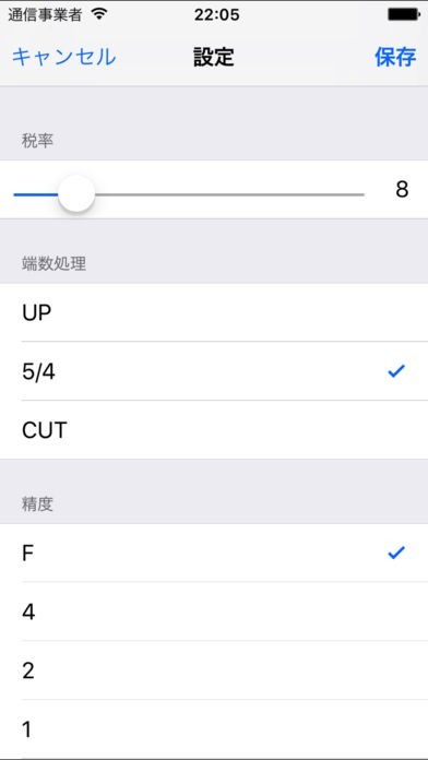 税込や税抜ボタンが付いていたり、税率や精度、端数処理の設定が可能など経理の計算が簡単にできるように開発されています。また画面回転にも対応しているので、使いやすい作りとなっています。