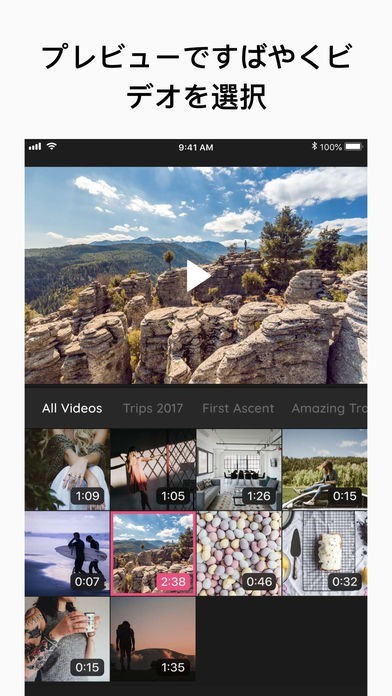 クロップ、スプリット、トリム、背景や音楽の追加などの機能を使って、あなたの冒険を世界中にシェアしましょう!