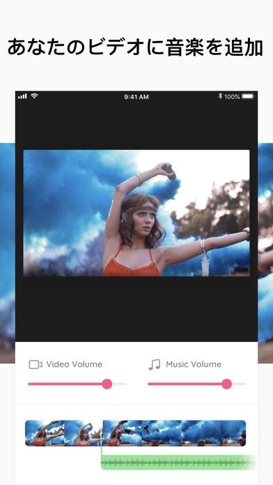 • アプリのライブラリかご自身のiTunesから音楽を追加して動画がさらに素敵な作品に