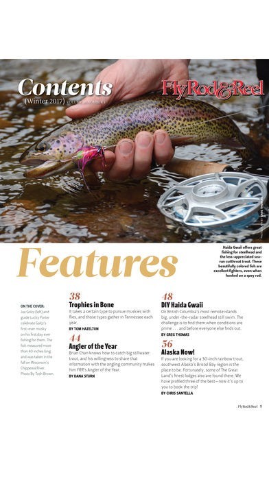 App Storeより引用Fly Rod & Reel is packed with the best writing about your favorite sport, accompanied by the finest photography available. Four times a year, we bring you the fly-fishing life as no other magazine can, covering destinations and quarry in your backyard and around the world, while reviewing the rods, reels, lines, flies and other gear that make your angling possible.