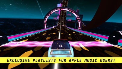Applemusicのプレイリストや端末に保存されている楽曲から好きなものを選ぶと、それにピッタリなレーストラックが生成され、音楽との一体感を感じながらゲームができます。