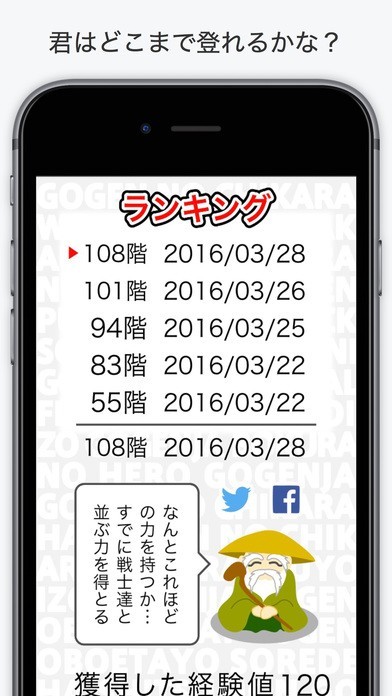 英単語を語源から覚えるアプリ。語源を覚えることで英単語の暗記力がアップします。頻出する語源の34種類は、辞書に掲載されている14400の英単語に含まれているため、語源をしっかり覚えるだけで効果的に単語力が付きます。このアプリは、頻出する語源34種類を中心に構成されており、ゲームを通じて暗記できるようにしてあるので無理せず楽しく英単語が学べると好評です。成績はランキングとして掲載され、世界中のプレイヤーと比較できます。TwitterやFacebookと連動しているのでお友達と情報をシェアして楽しく学習できます。
