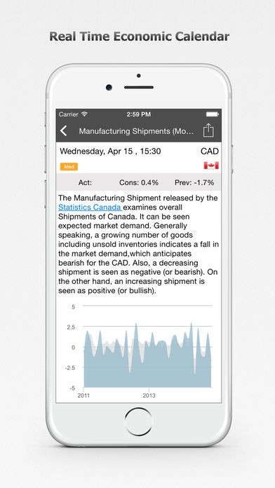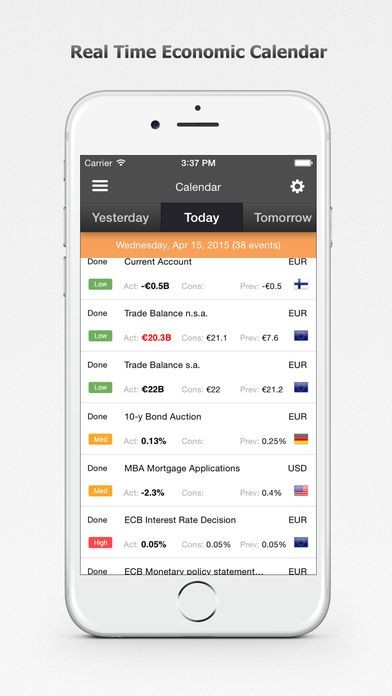 FXトレードでもう一つ大事なのが、ファンダメンタルズや経済ニュースです。このアプリならわかりやすいデータで30カ国以上の経済ニュースをカレンダー形式で表示できます。