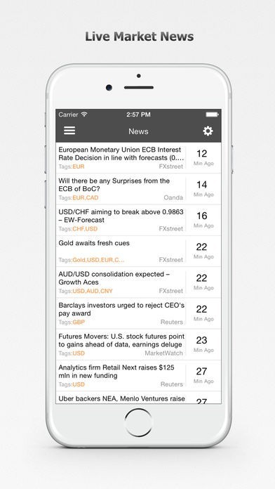 FXトレーダーにとって重要なのがチャートのテクニカル分析を元に動きを予測することです。このアプリではそんなテクニカル分析によるライブチャートを表示することができます。
