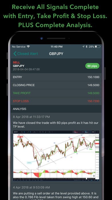 With this app, you have the convenience of having Professional Forex Traders backing you up with their powerful analysis and trade calls and all sent directly to you LIVE on your mobile device.