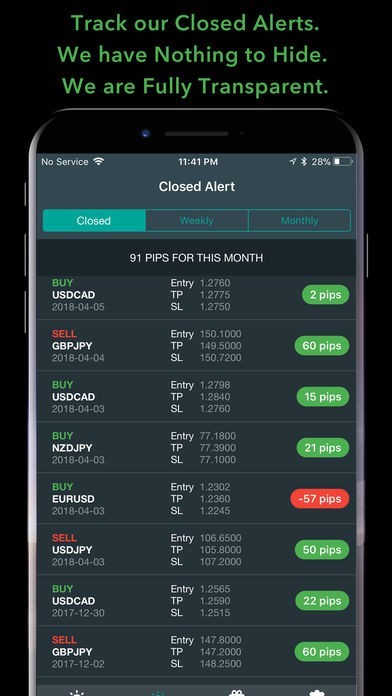 We aim to be the most transparent Forex Signals provider. Every single trade signal provided comes with an Entry level, Take Profit and Stop Loss level.